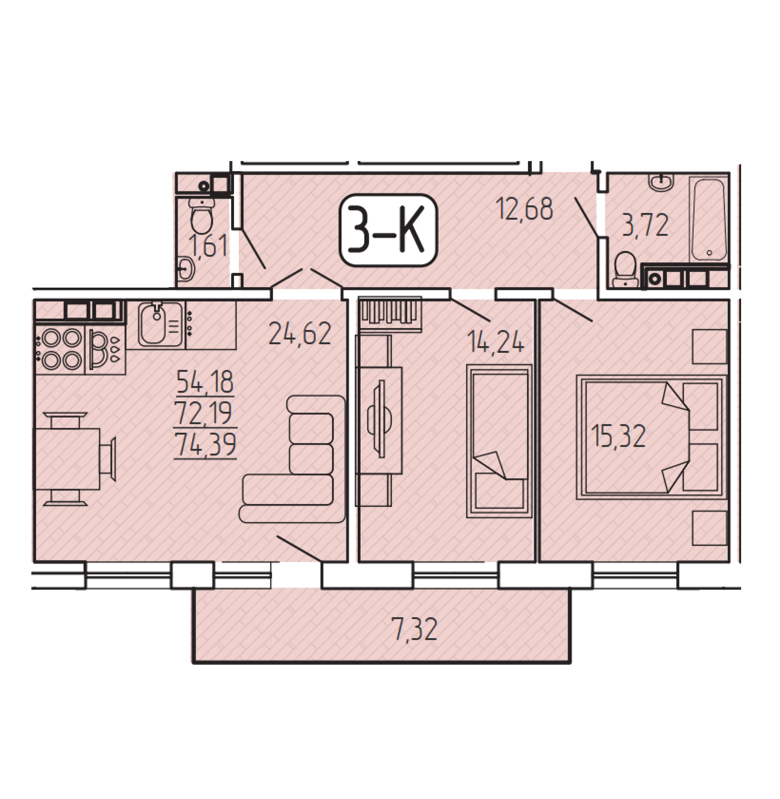 3-комн. квартира в ЖК СМИТ-Квартал 140Б дом №2
